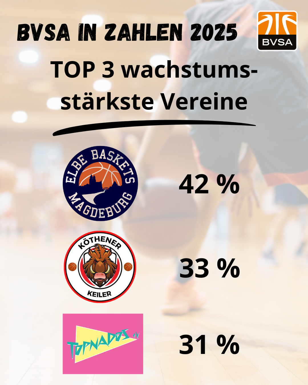 Kleinere Vereine wachsen besonders stark und erfreuen sich einer deutlich steigenden Spielerzahl – darunter die Elbe Baskets aus Magdeburg, die Köthener Keiler und die TOPnados aus Halle.